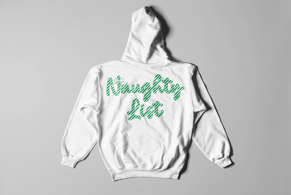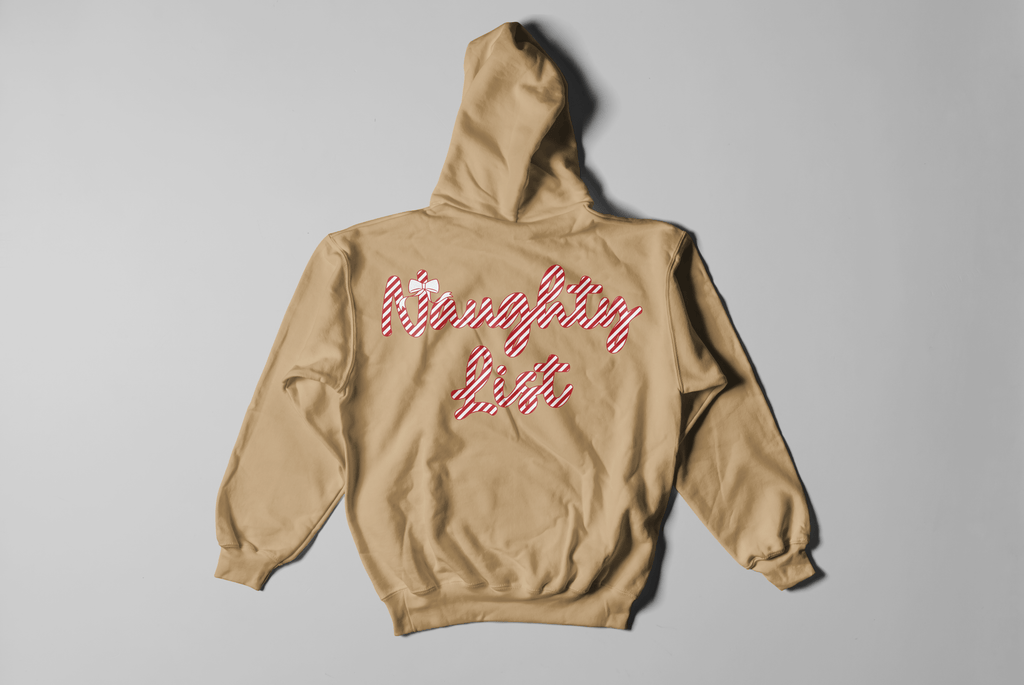 Stay warm while stirring up a bit of holiday trouble with our Naughty List Hoodie! Perfect for anyone who embraces their playful side, this ultra-soft fleece hoodie features a bold, cheeky design that lets everyone know you’re bringing the fun this season.